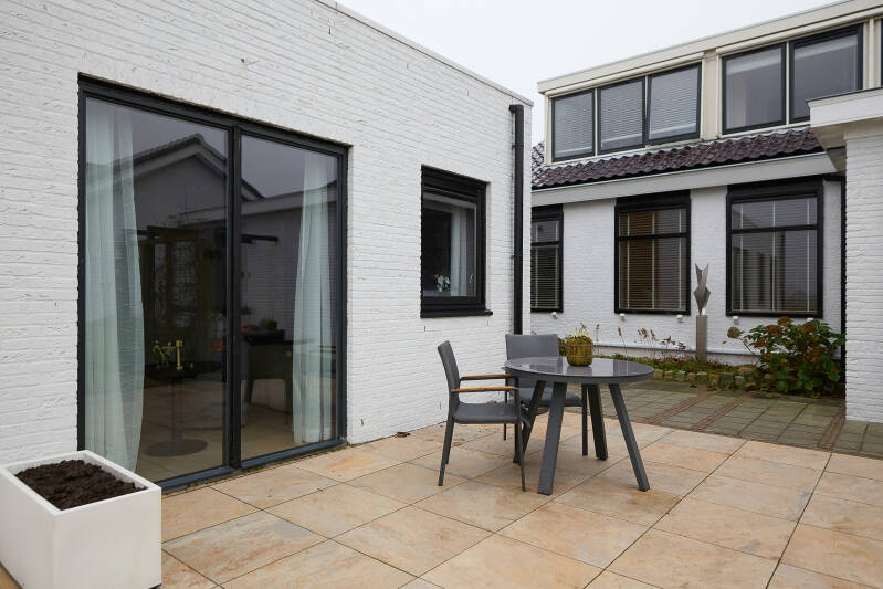 The studio overlooks the garden and terrace and offers an abundance of space and light.
